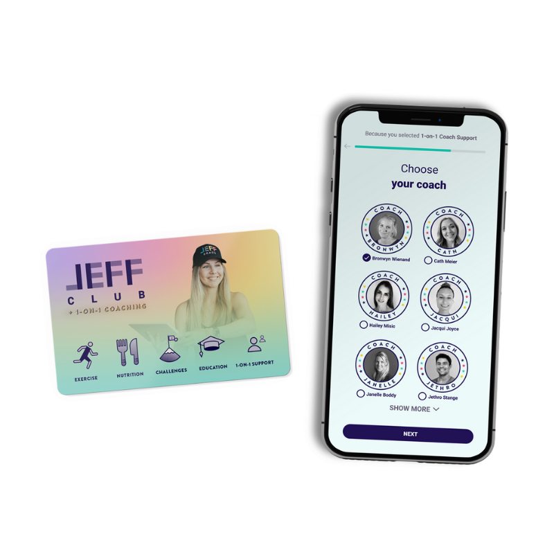 On acme of everything in your JEFF Club membership, add the phenomenal daily support of a world-class one-on-1 Coach, and receive individualised practice and meal plans. Your Omnibus will care massively about non just your health and fitness, merely your overall happiness too! They'll exist your accountability partner, teacher, and the greatest cheerleader you've ever had. Together, you'll accomplish life-irresolute results!